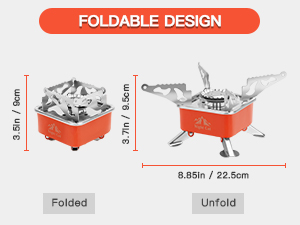 【Portable and Lightweight】 The outdoor portable stove can be easily folded for storage and takes up very little space in your backpack. This portable stove is excellent outdoor camping gear