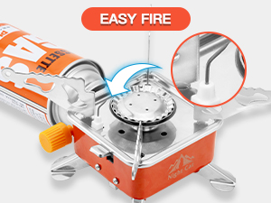 【Easy to Use】To use the backpacking stove, connect the gas tank and open the gas valve. The 2800W butane stove uses piezoelectric ignition, so no batteries are required