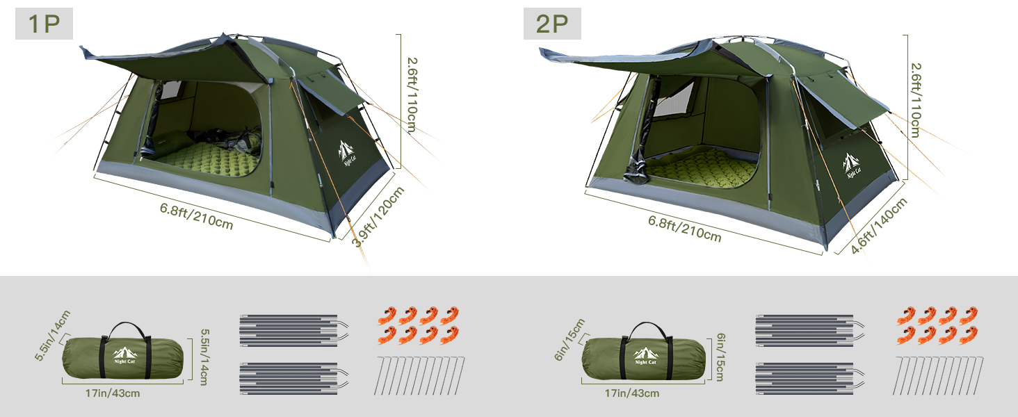 HIGH PERFORMANCE WATER PROTECTION: This waterproof 2-person tent and 1-person waterproof tent are equipped with 3000mm fabric and guarantee dry comfort in any weather. Ideal for camping enthusiasts and backpackers.