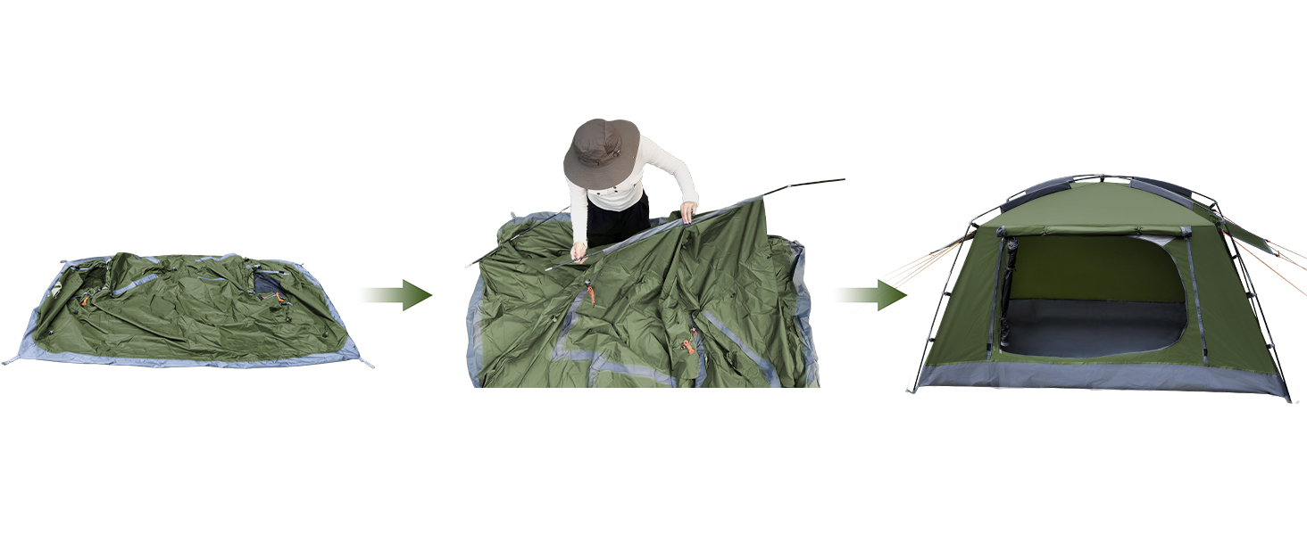 QUICK AND EASY SET UP As a single wall dome tent, it promises quick and easy setup. Perfect for quick set-up during festival tent days or spontaneous camping.